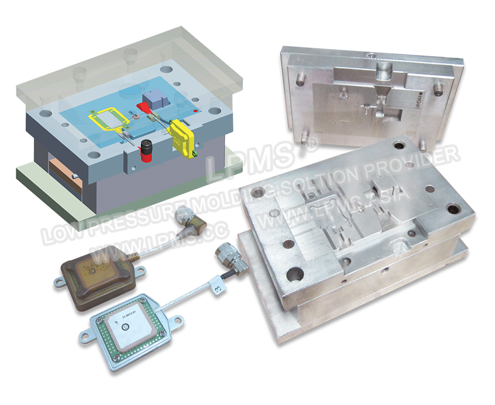 低壓注膠模具可用鋁材或鋼材製成,如果待封裝的元器件為鋼材或硬質(zhì)材料器件,建議模穴區(qū)域使用鋼材製作。
